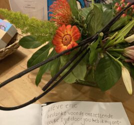 In de avond deed ik ook een presentatie voor een iets kleinere groep. Carel was daar niet bij aanwezig. Het was bijzonder mooi om mee te mogen maken dat we het niet alleen over mijn boek hadden maar elke gast kon ook zijn eigen verhaal vertellen. En dat is precies waar het inspiratiecafé voor bedoeld is. We sloten af met een bubbelwijn en proostten.